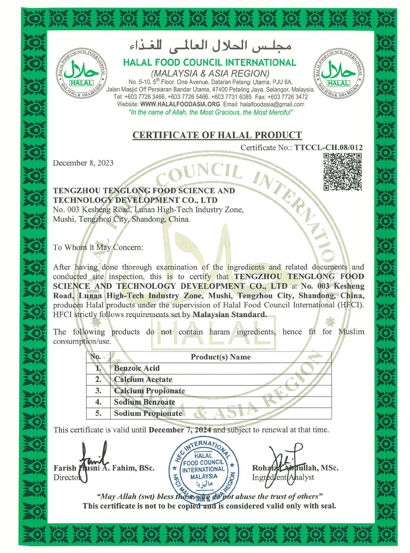 公司專業(yè)生產(chǎn)苯甲酸,苯甲酸鈉,丙酸鈣,丙酸鈉和醋酸鈣等系列產(chǎn)品